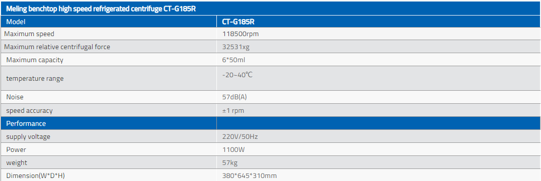 The maximum centrifugal force :32531xg, the maximum speed is 18500r/min and the speed accuracy is ±1rpm