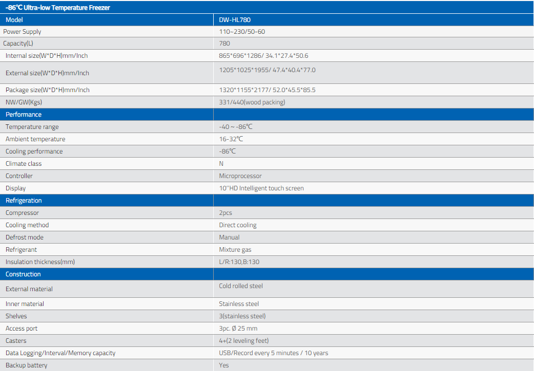 Two high-efficiency refrigeration sytems work independently,if one system fails,the other can still maintain the temperature at -80℃, safe, secure and reliable.