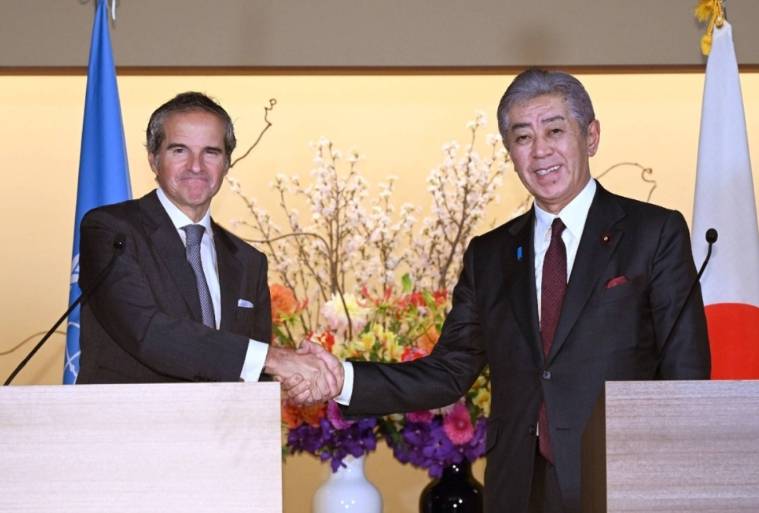 In their meeting at the State Guest House, Akasaka Palace, in Tokyo, Iwaya and Grossi discussed the work at the Tokyo Electric Power Company (Tepco) Holdings plant and the release of tritium-tainted treated water from the facility into the ocean.