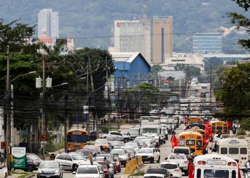 A view shows cars standing in traffic as a blackout hits Honduras in San Pedro Sula, Honduras March 1, 2025.