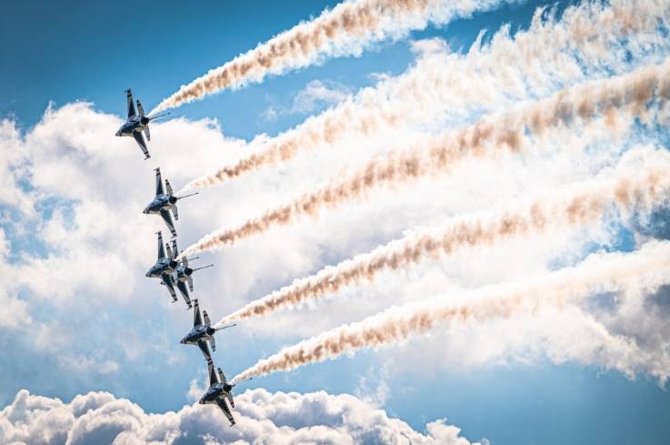 F-16 Fighting Falcons with the U.S. Air Force Air Demonstration Squadron, the Thunderbirds, perform during the Speed of Sound Airshow at Rosecrans Air National Guard Base in St. Joseph, Mo., Sept. 15, 2024. Hosted by the 139th Airlift Wing and city of St. Joseph, the event was a chance to thank the community and approximately 50,000 attendees for their support.