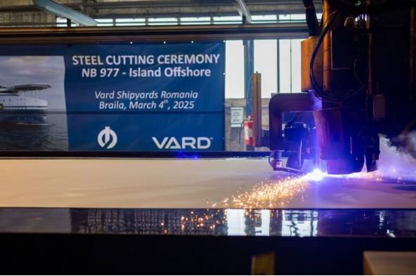 The steel cutting that marks the official start of construction for the first newbuild OECV, named Island Evolution, took place on March 4 at Vard Shipyards Romania – Braila.