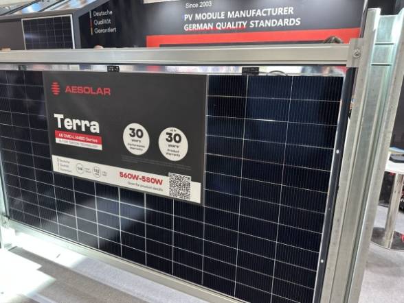 Wedoany.com Report-Mar 11, AE Solar has launched new bifacial PV modules for vertical installations. The CMD-L144BD, part of the Terra series, are n-type tunnel oxide passivated contact (TOPCon) panels, with a maximum power output ranging from 560W to 580W. Their backside power gain is reportedly up to 10%.