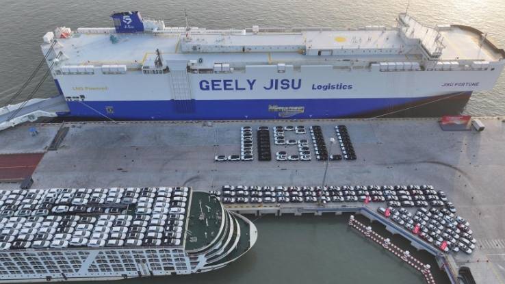 Wedoany.com Report-May 27, On May 22, JISU Logistics, a subsidiary of Geely Automobile, held a naming and maiden voyage ceremony for its first self-operated roll-on/roll-off (RoRo) vessel, JISU FORTUNE, at Haitong Terminal in the Taicang port area of Suzhou Port. The 18,000-tonne ship, designed to carry 7,000 vehicles, set sail with over 5,000 Chinese-made cars destined for the UK, the Netherlands, Belgium, and other European markets.
