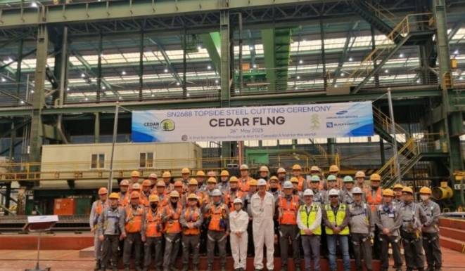 Wedoany.com Report-Jun 11, On May 26, 2025, Samsung Heavy Industries (SHI) held a topside steel cutting ceremony at its shipyard in South Korea, marking a significant milestone for the Cedar LNG project near Kitimat, British Columbia, Canada. The event marked the beginning of construction on the floating liquefied natural gas (FLNG) vessel, a central component of the $4 billion project developed by Pembina Pipeline Corporation and the Haisla Nation.