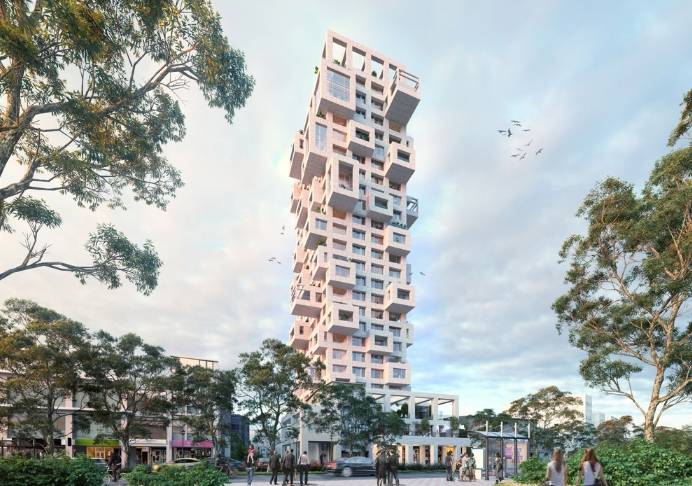 The tower includes multifunctional public amenities at its ground level and a shared terrace at the top, designed to encourage community interaction among residents. These features support both social engagement and recreational use within the development.