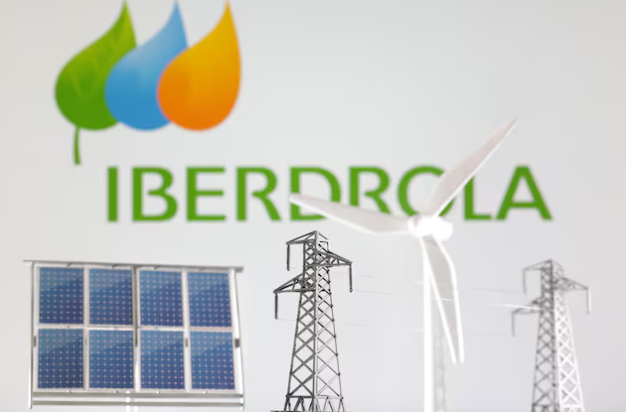 Miniatures of windmill, solar panel and electric pole are seen in front of Iberdrola Renewables logo in this illustration taken January 17, 2023.