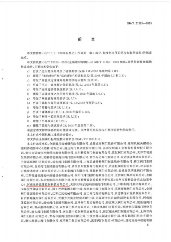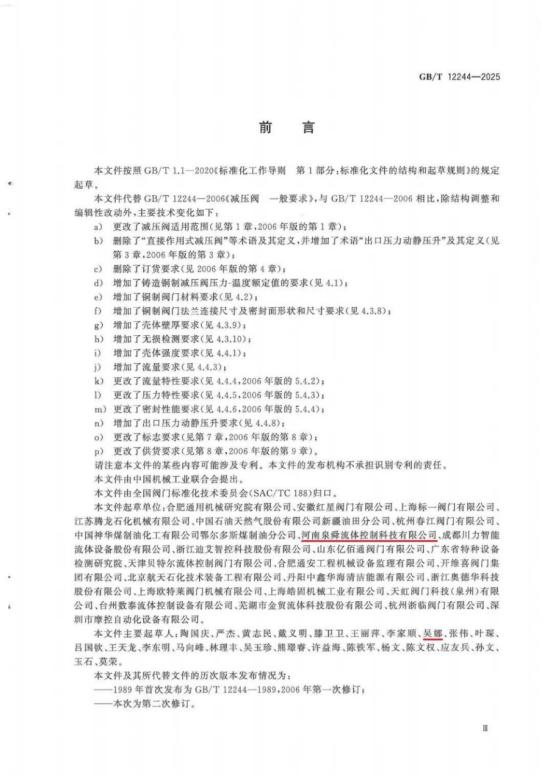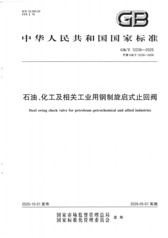 Recently, the National Technical Committee for Valve Standardization officially released three national standards: GB/T 21385-2025 "Metal-Seated Ball Valves," GB/T 12244-2025 "Pressure Reducing Valves - General Requirements," and GB/T 12236-2025 "Steel Swing Check Valves for Petroleum, Petrochemical, and Allied Industries." As one of the core drafting units, our company fully participated in the development and drafting of these three national standards, which will be implemented on May 1, 2026.